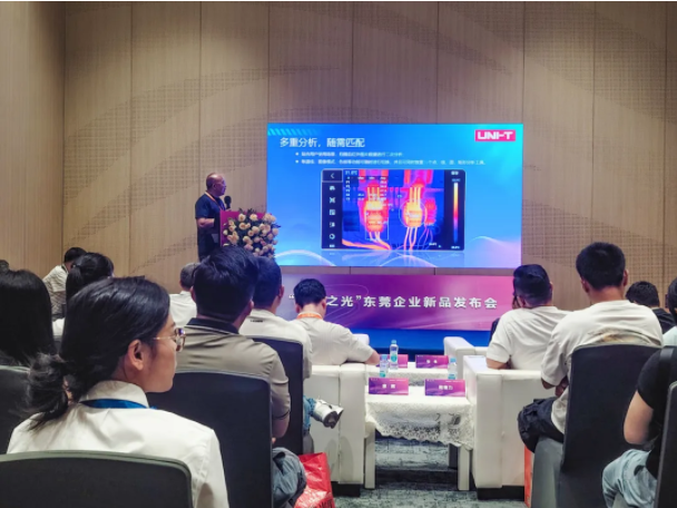 展會期間,同期舉辦了“創(chuàng)新之光”東莞企業(yè)新產(chǎn)品發(fā)布會。測試儀表市場部產(chǎn)品經(jīng)理廖加廷應邀出席并作專題技術(shù)宣講。他系統(tǒng)介紹了UTi640X靈蛇系列智能型紅外熱成像儀與UTi589A筒式在線熱成像儀的技術(shù)亮點、創(chuàng)新特性及典型應用場景,全面展現(xiàn)了優(yōu)利德在紅外熱成像領(lǐng)域的技術(shù)實力與產(chǎn)品創(chuàng)新能力。