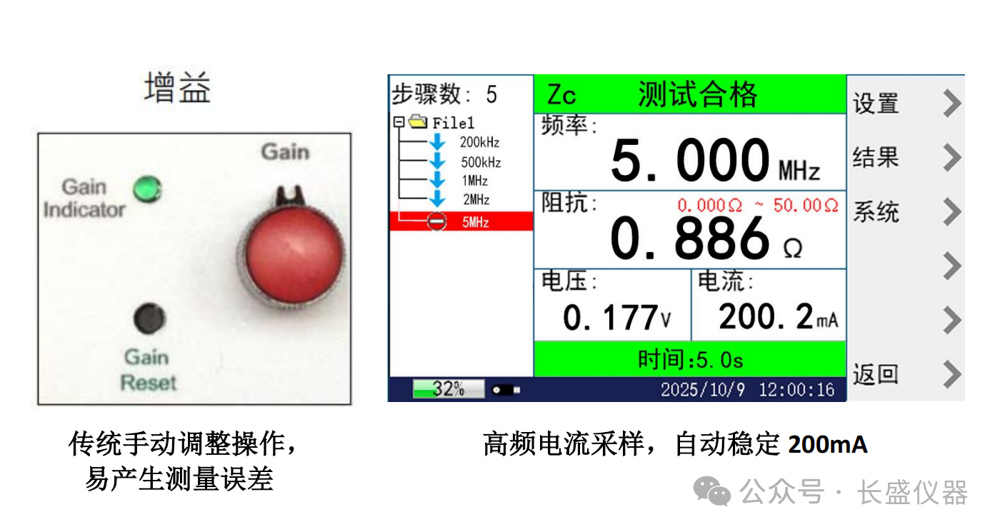 內(nèi)置高頻電流采樣與負反饋技術,確保測試電流自動穩(wěn)定在200mA(±0.5mA),保證測試條件一致性與結果可重復性