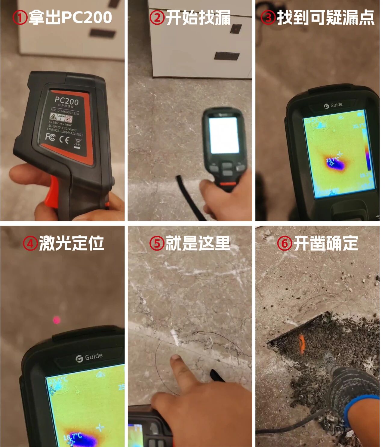 這種細(xì)微的溫差人眼無法感知,卻是紅外熱像儀鎖定漏點的關(guān)鍵線索。它通過接收物體表面的紅外輻射,實時生成高清熱圖,漏點在熱像圖中清晰可視。王師傅將漏點展示給業(yè)主,真正做到一目了然、有據(jù)可依,有效避免了后續(xù)的疑慮與糾紛。這不僅讓維修過程變得極快,更從根源上避免了盲目開挖帶來的巨大經(jīng)濟(jì)損失,是一種真正高效且經(jīng)濟(jì)的檢漏工具。最終確定漏水位置,王師傅贏得了業(yè)主的滿意與信任。