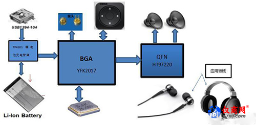 其中,YFK2017是一顆全集成自適應(yīng)主動降噪雙模藍(lán)牙耳機(jī)芯片,具有全集成、高性能、低功耗等特點(diǎn),并可以同時(shí)支持BT4.2和BLE4.2,支持HIFI音質(zhì)(192Khz/24bit),SNR大于100dB,支持EQ以及各種音效技術(shù)(如超重低音,3D環(huán)繞等),支持多種噪音消除技術(shù),尤其是高性能的自適應(yīng)主動降噪技術(shù),可以讓高端主動降噪耳機(jī)省去昂貴的獨(dú)立主動降噪芯片。