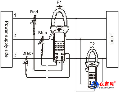2)鉗口鉗在相應(yīng)相位的被測(cè)導(dǎo)線上,即用戶需測(cè)三相電路中的