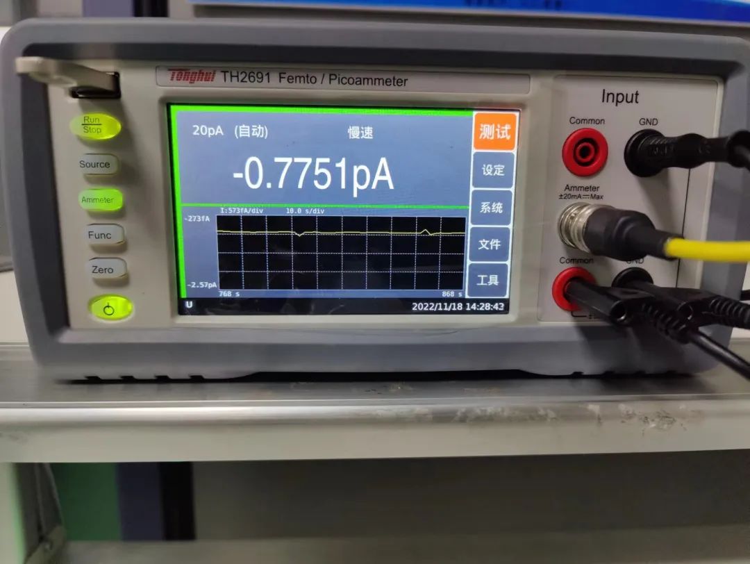 隨著溫度變化,熔噴布會產(chǎn)生負(fù)電流,而負(fù)電流是防御病毒的重要手段。傳統(tǒng)數(shù)字萬用表(DMM),無法測量微弱電流。TH2690系列飛安表和靜電計提供行業(yè)領(lǐng)先的0.1fA電流測量分辨率,可實現(xiàn)傳統(tǒng)的皮安表和靜電計無法完成的準(zhǔn)確、精密的測量。