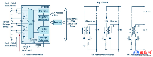 圖1. 電池單元均衡典型拓?fù)浣Y(jié)構(gòu)。
