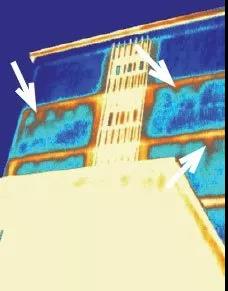 然而,大型建筑或復(fù)雜建筑的情形完全不同。在這些情況下,位置和尺寸不允許使用提升裝置,且人工檢測既耗時(shí)又耗費(fèi)成本,紅外熱成像技術(shù)將成為首選技術(shù)。
