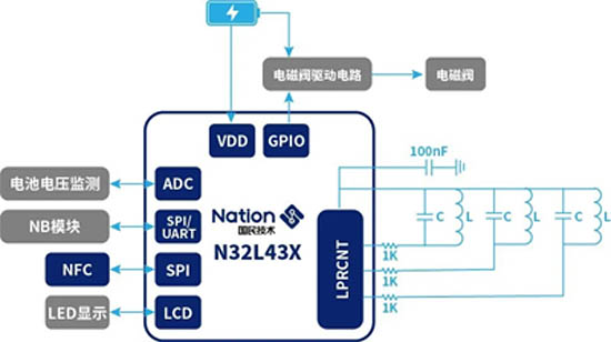 ●方案采用的國民技術(shù)N32L43X系列MCU內(nèi)置LC無磁傳感計量單元,集成Segment LCD驅(qū)動接口;