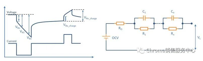 (圖一) VDA脈沖測試電壓變化與電池內(nèi)阻等效電路關系圖