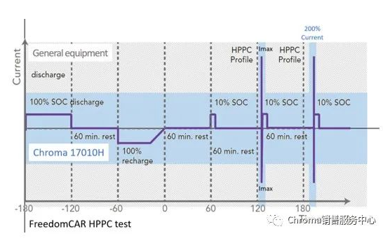 若參考美國先進電池聯(lián)盟(United States Advanced Battery Consortium, USABC)混合脈沖特征(HPPC)測試,電池芯于不同充電狀態(tài)(States of Charge, SOC)下進行10~30S最大脈沖放電與10S最大脈沖充電測量電位變化來計算電池內(nèi)阻與功率特性。舉例:若60Ah鋰電池芯要測試10倍脈沖工作電流(10C-rate),在過去必須購置600A充放電設備才能實施?,F(xiàn)在,致茂電子開發(fā)出200%的脈沖電流測試方案供您選擇!