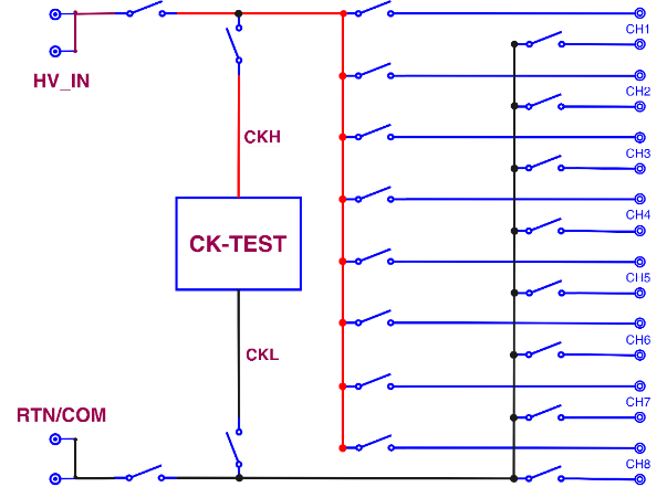 TH9520單臺(tái)主機(jī)配上三個(gè)通道掃描盒,組成30路電機(jī)綜合測(cè)試系統(tǒng)。每通道里有兩個(gè)高壓繼電器,在測(cè)導(dǎo)通電阻時(shí)可以采用四端測(cè)量法,大大提高了產(chǎn)品測(cè)量精度。