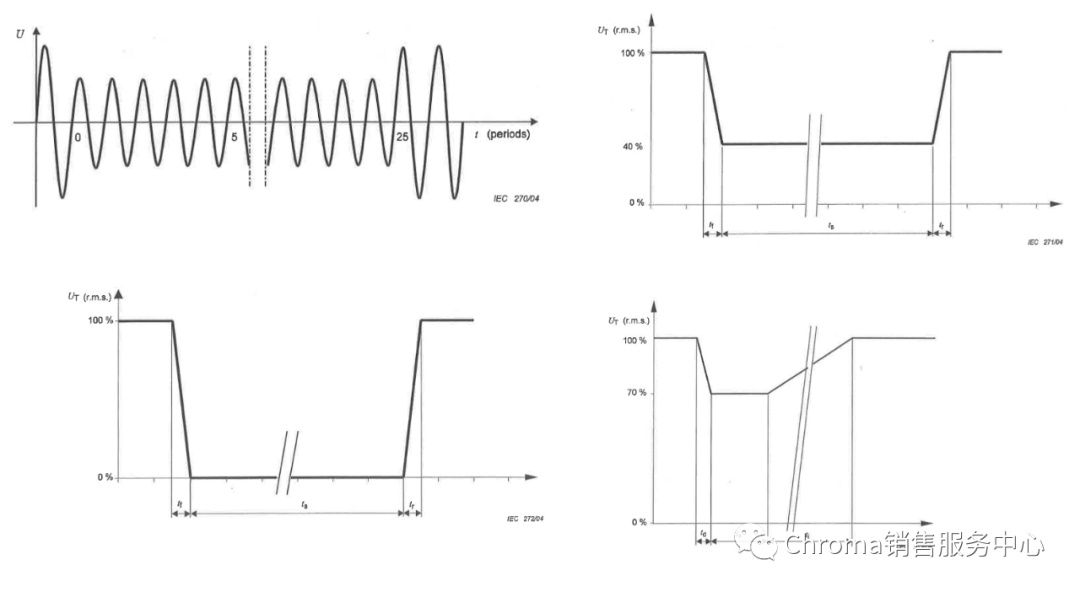 ▲ 圖四 可程控電網(wǎng)模擬器產(chǎn)生的各式波形示意圖