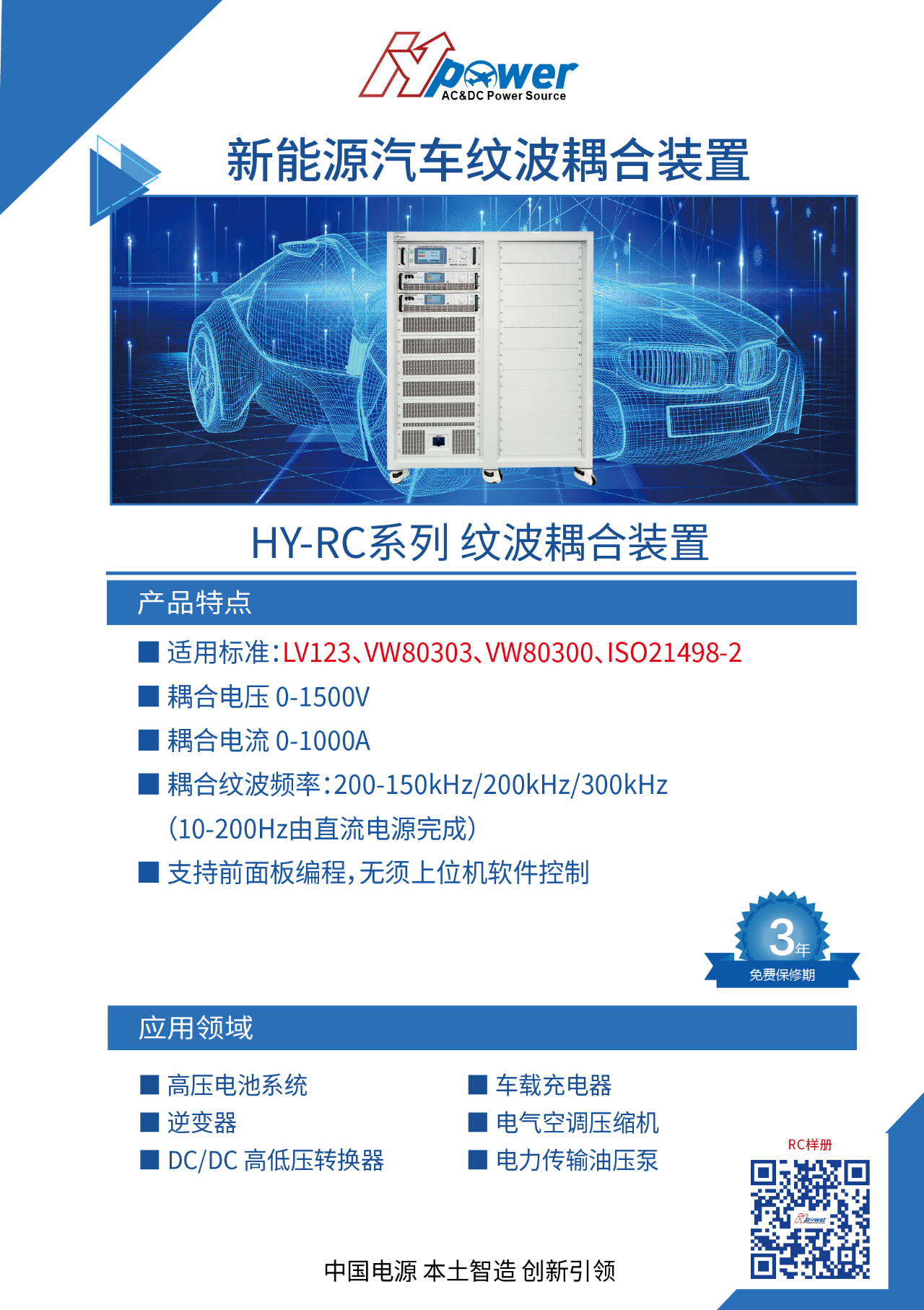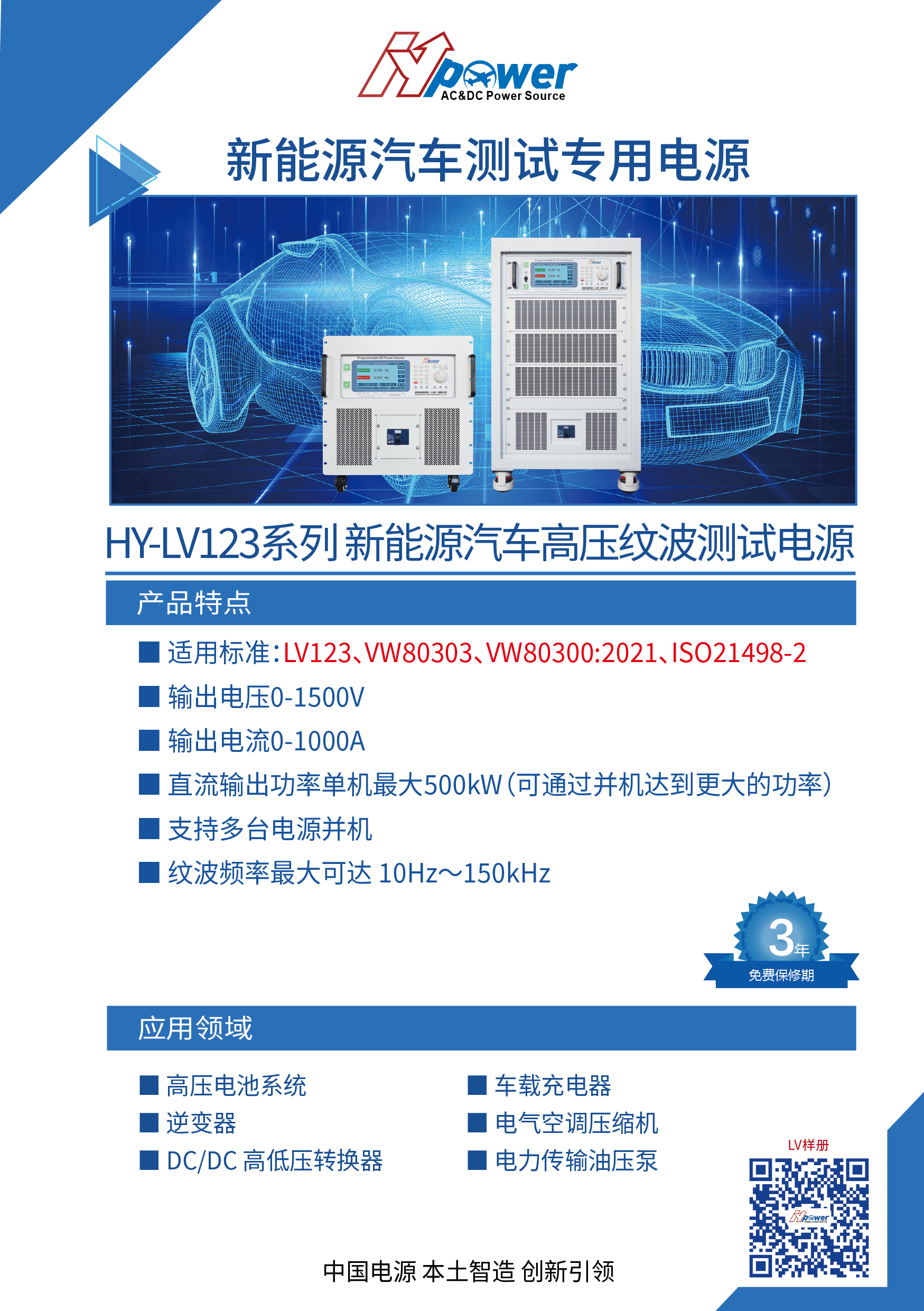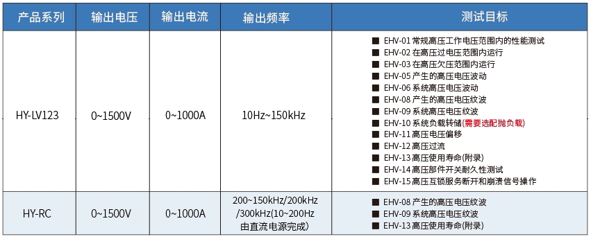 新能源汽車的總體構(gòu)造基本上由九部分組成:車身、電機、電池組、電加熱器、充電系統(tǒng)、控制器、功率電子、制動系統(tǒng)、輔助系統(tǒng)。新能源汽車與傳統(tǒng)汽車整車電性能最主要的區(qū)分就是三電的不同:電驅(qū)、電池、電控。電驅(qū)包括傳動機構(gòu)、電動機、逆變器,電池包括電池模組、結(jié)構(gòu)系統(tǒng)、電氣系統(tǒng)。因此電性能測試的區(qū)別也是對應(yīng)新能源與傳統(tǒng)汽車三電的不同進(jìn)行的,需要進(jìn)行LV123、VW80303、VW80300、ISO21498-2等汽車標(biāo)準(zhǔn)測試。高壓部件電力測試主要有450V和900V兩種電力系統(tǒng)測試,其中“高壓紋波疊加”是其中的難點。HY-LV123系列可覆蓋這些車標(biāo)測試的大部分內(nèi)容,HY-RC系列則專用于紋波疊加測試項目中。本文中,我們將圍繞“450V和900V”的汽車高壓系統(tǒng)電性能測試進(jìn)行具體介紹。