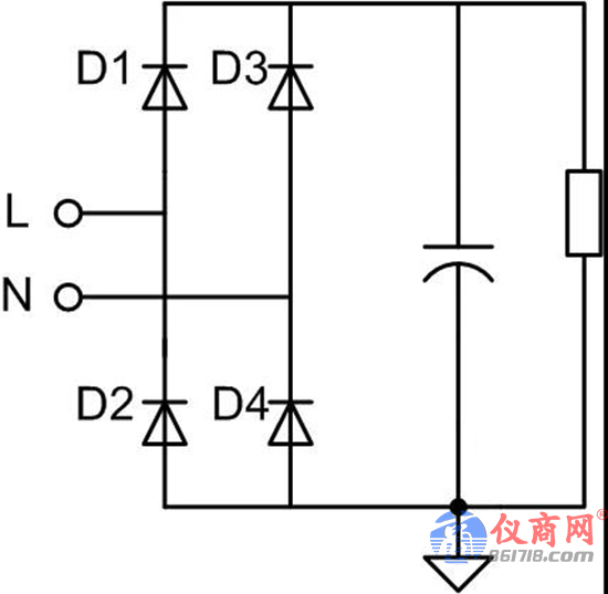 如圖2是開關(guān)電源輸入端典型的整流濾波電路,在L對N為正的半周,D1和D4導(dǎo)通,初級地電位接近于N線對大地電壓,而在L對N為負(fù)的半周,D3和D2導(dǎo)通,通過D2相當(dāng)于將初級地連接到L線上。所以若將示波器探頭地夾連接到初級地,在L對N為負(fù)的半周使L線對大地短路,電網(wǎng)有足夠大的容量,會(huì)造成線路、設(shè)備燒毀等嚴(yán)重事故。為此一些人斷開示波器供電地線進(jìn)行測量,避免短路,但是這種方法是錯(cuò)誤的、絕對不可取的。通用示波器是按照接地的情況設(shè)計(jì),無地線使用連接到對大地存在較高共模電壓的設(shè)備上時(shí),示波器裸露的金屬部件會(huì)帶電!會(huì)危及生命財(cái)產(chǎn)安全,在儀器的說明書上安全相關(guān)章節(jié)也有說明。用戶應(yīng)當(dāng)閱讀儀器設(shè)備的說明書,并按正確的方法使用。
