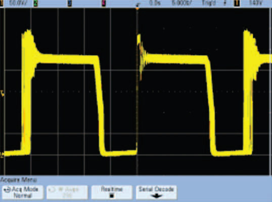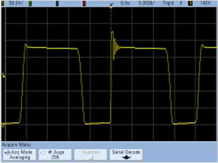 ▲圖1.正常采集模式下捕獲的開關電源 Vds