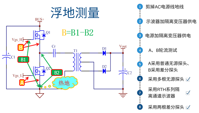 出于對成本和安全的考慮,浮地測量一直是工程師的痛點。在測量LLC電路的下管驅(qū)動時,如果用示波器直接測,有可能出現(xiàn)漏電和短路的情況,通常有八種處理方法。