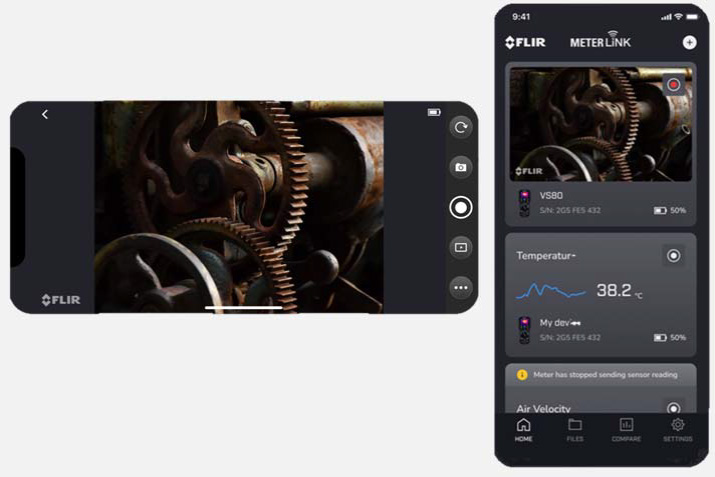 ● 無線移動(dòng)應(yīng)用,實(shí)現(xiàn)遠(yuǎn)程協(xié)作:通過Flir Meterlink應(yīng)用程序,用戶可在iOS或Android設(shè)備上實(shí)時(shí)查看VS80拍攝的圖像和視頻,下載保存文件,并輕松與客戶或同事共享,打破地域限制,實(shí)現(xiàn)高效協(xié)作。