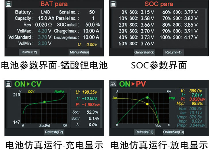 該電源能夠模擬實(shí)際應(yīng)用中的電池特性,包括充放電行為,以輔助完成各類測試。該系列內(nèi)置8種固定電池模型+1種可自定義電池模型(模型基于國內(nèi)外公開發(fā)表的相關(guān)研究論文和測試數(shù)據(jù)):錳酸鋰(LMO)、鈷酸鋰(LCO)、磷酸鐵鋰(LFP)、三元鋰(NCM)、鈦酸鋰(LTO)、鉛酸(Pb)、鎳氫(NiMH)以及鎳鎘(NiCd)電池。