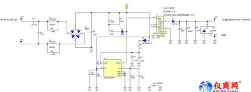 采用UCC28910的0.35A隔離式一次側回授馳返的12V電壓參考設計是一個緊密且符合成本效益的通用交流輸入電壓,在4.2W條件下能夠通過UCC28910變?yōu)?2V。