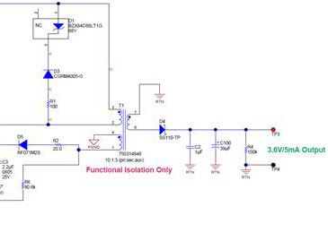 這款低功耗反激式電源旨在最大限度地降低總輸入電流,同時提供3.6V/5mA的低功率輸出。輸出在功能上與輸入隔離。通過使用具有集成高壓MOSFET和初級側調節(jié)的UCC28910控制器,物理尺寸被最小化。